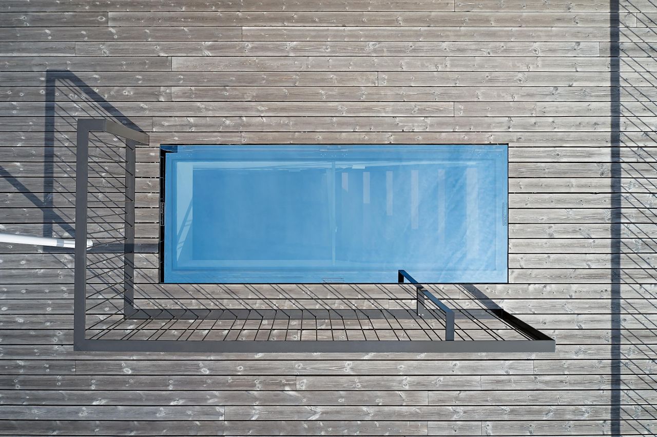 Für den Einbau des Dachausstiegs bietet s: stebler auch im Innenbereich architektonisch elegante Lösungen. Für maximalen Lichteinfall wird das Flügelprofil in den schmalen Rahmen eingesetzt. Die äussere Scheibe des Dreifach-Isolierglases überdeckt das Profil und verleiht dem Ausstieg eine Ganzglasoptik.