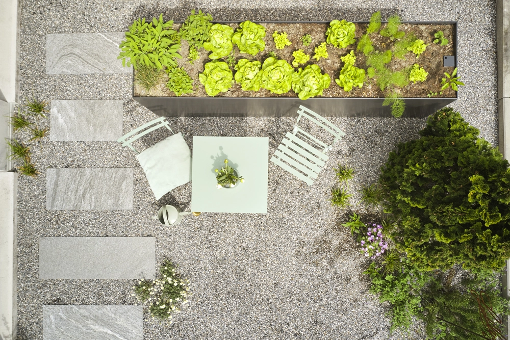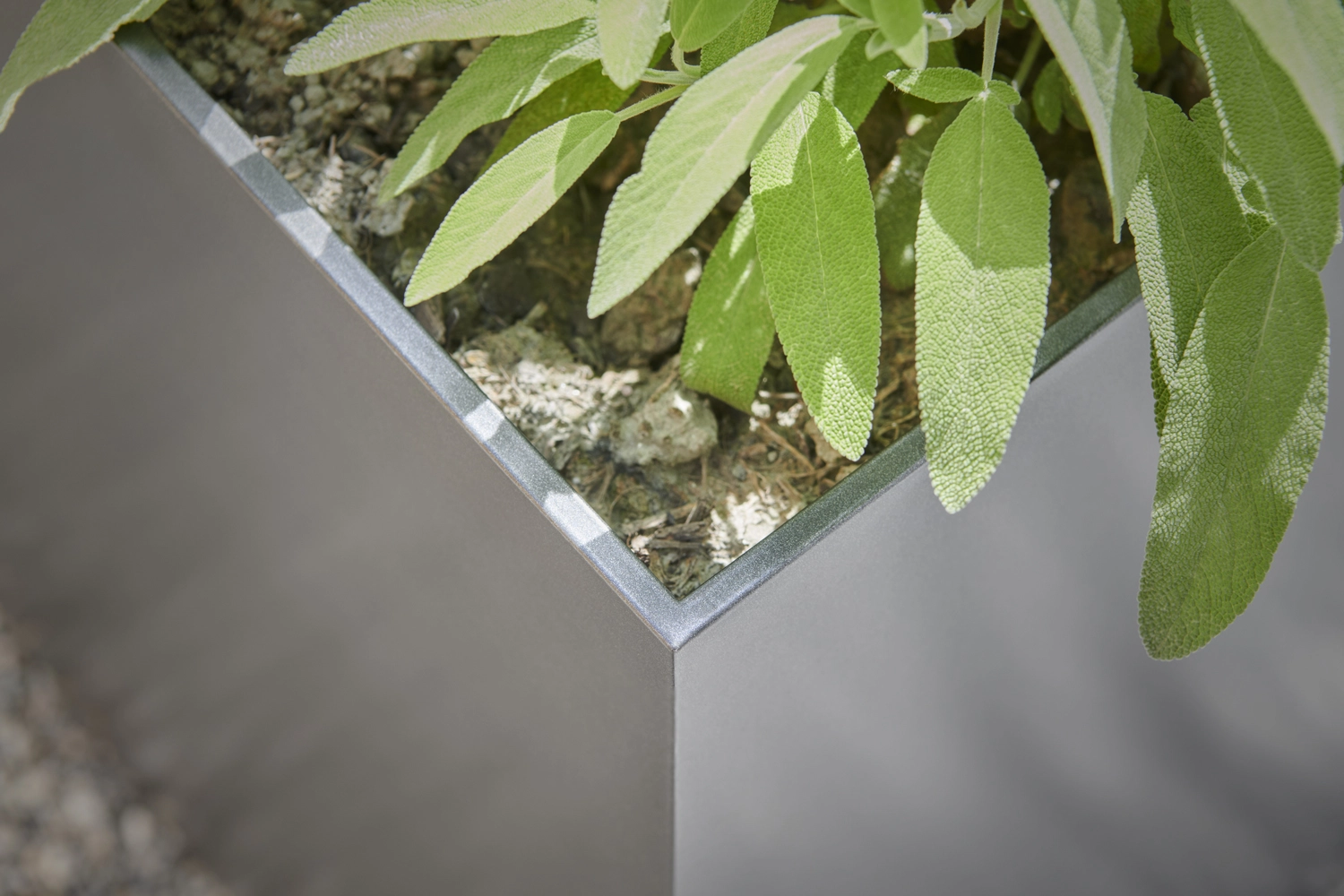 Die Pflanzenbox verbindet modernes Design mit funktionaler Raffinesse. Ob auf der Terrasse, im Wintergarten oder im Aussenraum – sie setzt stilvolle grüne Akzente und schafft ein harmonisches Ambiente.